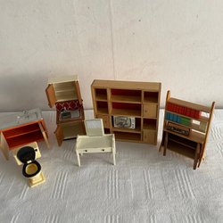 Äldre dockskåpsmöbler.