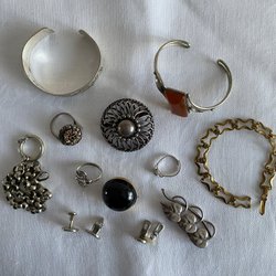 Äldre broscher i silver.