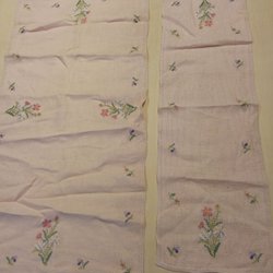 Liten Duk och löpare, broderade med blommor, ljusrosa