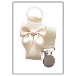 Gräddvit napphållare med champagnefärgad rosett silverfärgat clip dop doppresent