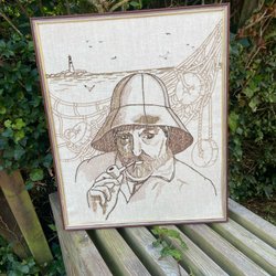 En mkt Speciell Äldre FISKARGUBBEN TAVLA m Läckert Motiv !