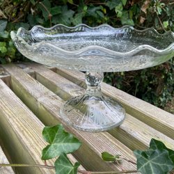 Ett Vackert Äldre Stort Glas TÅRTFAT m Elegant Mönster !