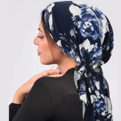 Blå, vit huvudduk