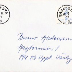 BÄCKESTA 30.6.71 l Sista dag brev Sistadagsstämpel BÄCKESTA 30.6.71