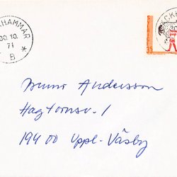 BÄCKHAMMAR l Sista dag brev Sistadagsstämpel BÄCKHAMMAR 30.10.71