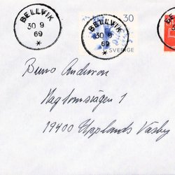 BELLVIK 30.9.69 l Sista dag brev Sistadagsstämpel BELLVIK 30.9.69