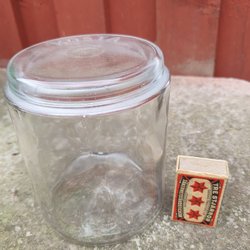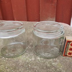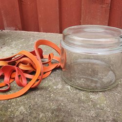 Glas Burk med lock och gummiband (dock ej spänstiga)