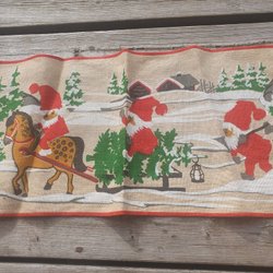 Äldre Julduk med tomtar design Aina MasOlle