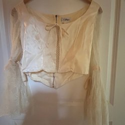 fin elfenbensfärgad silkestopp med spetsärmar trumpet