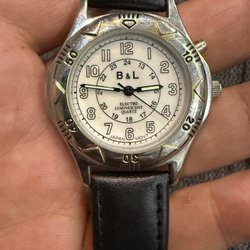B&L Electro Luminescent Quartz armbandsur med svart läderrem