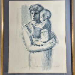 Louis Bastin - Förälder med barn - Litografi