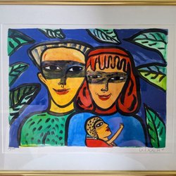 Ulrica Hydman Vallien - Kärlekspar med barn - Litografi