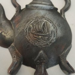 Tekanna i metall med krokar