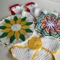 Retro handvirkade grytlappar påsktupp påsk…