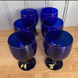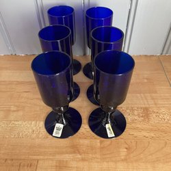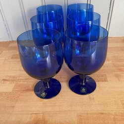 6 blå glas på fot, Isdele från Royal Krona.