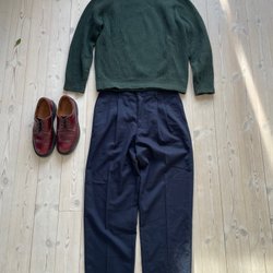 Relaxed fit mörkblå byxor, pressveck, W 33