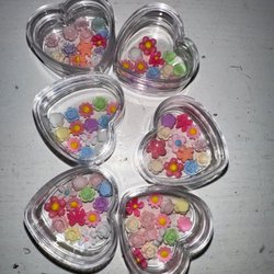 Parti pyssel-Miniblommor i fina små hjärtformade burkar!