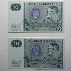 Svenska Tio Kronor Sedlar 1963 Ocirkulerade