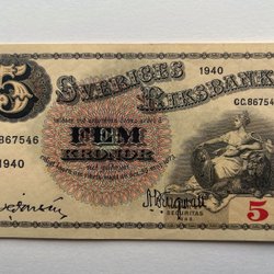 Svensk 5 Kroners Sedel från 1940 Ocirkulerad