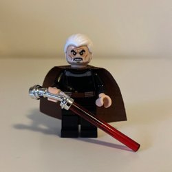 LEGO Star Wars Count Dooku minifigur med röd ljussabel och brun cape