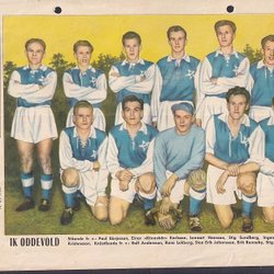 IK Oddevold, lagbild från RM nr 25-1955. På baksidan Bengt Lindskog, Hälsingborg
