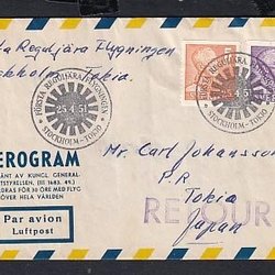 Aerogram från första flygningen Stockholm-Tokio 25.4.51