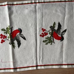 Julig 30/92 cm handbroderad bordslöpare med broderade fåglar