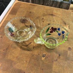 Handmålad skål och liten kanna, uranglas
