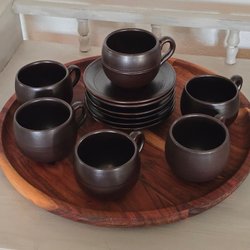 Höganäs Pärlband kaffekoppar med fat, 6 stycken