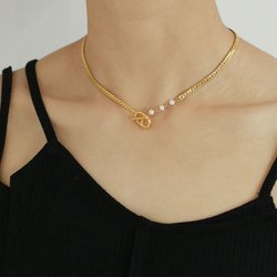 Black Zirconia Inlaid Genuine Pearl Necklace