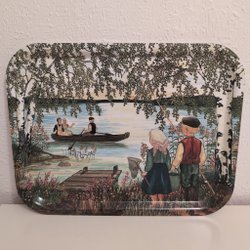 BRICKA. STOR OVAL PLÅTBRICKA. ASIATISKT MOTIV