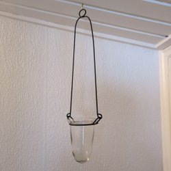 HÄNGANDE LJUSLYKTA I SMIDE MED GLASKUPA