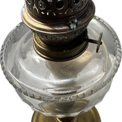 Vintage fotogenlampa Brass metall/trä/glass Kosmos brenner Glass Oil Lamp