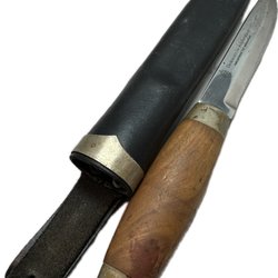 Vintage Brusletto Kniv m/ trähandtag läderskydd Direktoratet för sivil beredskap