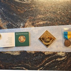 Samling av medaljer och Skånepengen