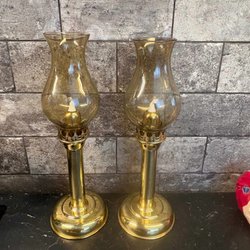 2 st Stormlyktor Ljuslyktar för stearinljus i mässing med glas
