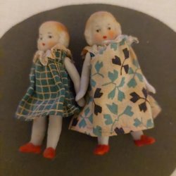 Två porslinsdockor med kläder