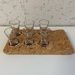 6 Shotglas med korkhållare. Små. Rymmer 15 ml.