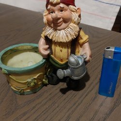 Trädgårdstomte med kruka och vattenkanna