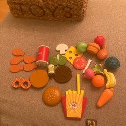 Leksaksmat i trä och plast
