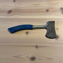 Yxa med blått handtag