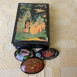 Lackarbete handmålad liten låda, ryssland??, vintage,
