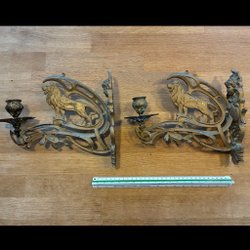 Äldre Ljusstakar i Metall med Lejonmotiv