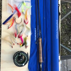 Flugfiskeset med spö, rulle och flugor