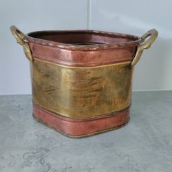 Vintage vackert skål i mässing ock koppar med brons handtag
