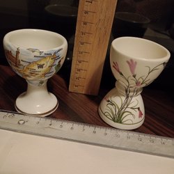 Äggkoppar i glas plus handbroderad fin påskduk. 33*33 cm.
