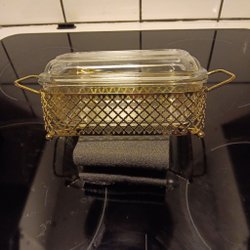 Smörask med guldfärgad hållare och lock