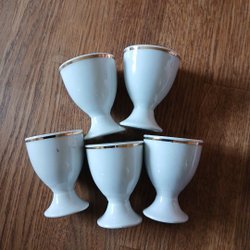 5 äggkoppar i porslin med guldkant