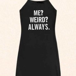 Svart Klänning med text: ME? WEIRD? ALWAYS.