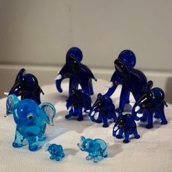 Tio elefanter i glas, blå Miniatyr Prydnad Glaselefant